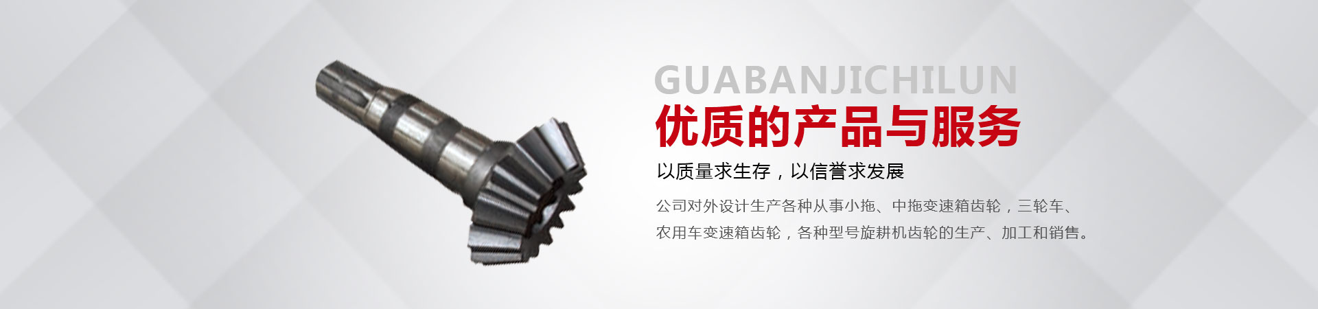 本廠位于省會東南60公里的全國重點鎮(zhèn)——大陸村鎮(zhèn)。本廠在市場內(nèi)設(shè)有銷售公司,經(jīng)銷工程機(jī)械;農(nóng)用拖拉機(jī);農(nóng)機(jī)具的整機(jī)和全車配件。市場緊靠308國道,距青銀高速寧晉路口14公里,交通十分方便。主要從事小拖、中拖變速箱齒輪,三輪車、農(nóng)用車變速箱齒輪,各種型號旋耕機(jī)齒輪、收獲機(jī)械變速箱齒輪的生產(chǎn)、加工和銷售。同時加工定做各種直齒輪,傘齒輪,斜齒輪,鏈輪,齒輪軸等機(jī)械產(chǎn)品。廠內(nèi)檢測手段齊全。十幾年來與河北、北京、山東、安徽、河南、吉林、陜西、山西、寧夏、黑龍江、遼寧等省市的企業(yè)建立了穩(wěn)固的業(yè)務(wù)關(guān)系。產(chǎn)品質(zhì)量穩(wěn)定、價格合理、供貨及時。